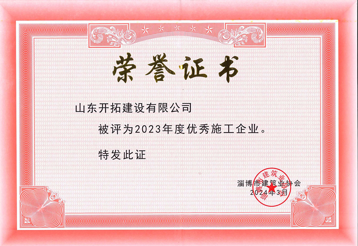 2024年3月,山東開拓建設(shè)有限公司被評委2023年度優(yōu)秀施工企業(yè)!